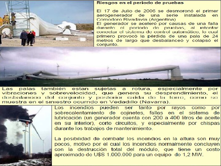A pesar de sus diversas ventajas atractivas, la energía eólica no existe sin unas desventajas. La energía eólica tiene que competir con fuentes convencionales sobre la base de costo, a pesar de los aumentos continuos del costo de los combustibles fósiles hoy en día. Una desventaja considerable es el peligro que una construcción de este tipo representa ya que depende de una fuente de energía inestable (viento) las altas velocidades que puede alcanzar provoca en ocasiones el desprendimiento de las aspas, sobrecalentamiento de los cojinetes y por consecuencia incendio de la maquina