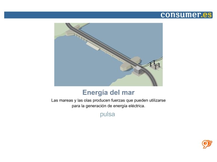 Métodos de generación Generador de la corriente de marea Los generadores de corriente de marea hacen uso de la energía cinética del agua en movimiento a las turbinas de la energía, de manera similar al viento que utilizan las turbinas eólicas. Este método está ganando popularidad debido a costos más bajos y a un menor impacto ecológico en comparación con las presas de marea.