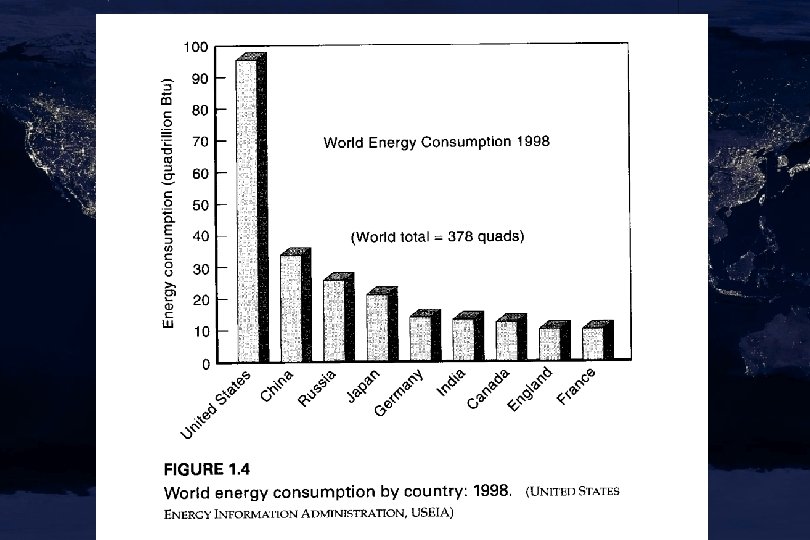 Composition of U. S. Energy Use Percent of total energy use 100 75 coal wood oil 50 gas 25 animal feed electricity 0 1800 1825 1850 1875 1900 1925 1950 1975 2000