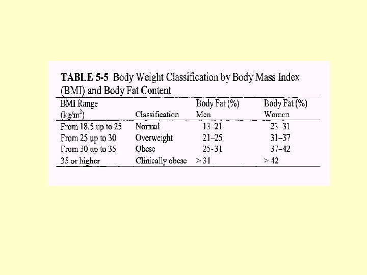 Recommended total weight gain in pregnant women by prepregnancy BMI (in kg/m 2) Weight-for-height category Recommended total gain (kg) Low (BMI <19. 8) 12. 5– 18 Normal (BMI 19. 8– 26. 0) 11. 5– 16 High (BMI >26. 0– 29. 0)2 7– 11. 5 Adolescents and black women should strive for gains at the upper end of the recommended range. Short women (<157 cm) should strive for gains at the lower end of the range. The recommended target weight gain for obese women (BMI >29. 0) is 6. 0.