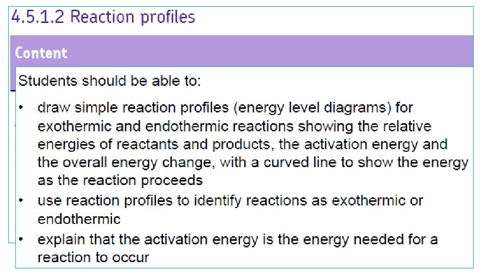 Energy changes Endothermic reaction Examples: photosynthesis, thermal decomposition, reaction of citric acid and sodium hydrogencarbonate • Energy ‘enters’ reaction (takes in energy) – cools surroundings • Thermometer readings fall Uses: sports injury packs