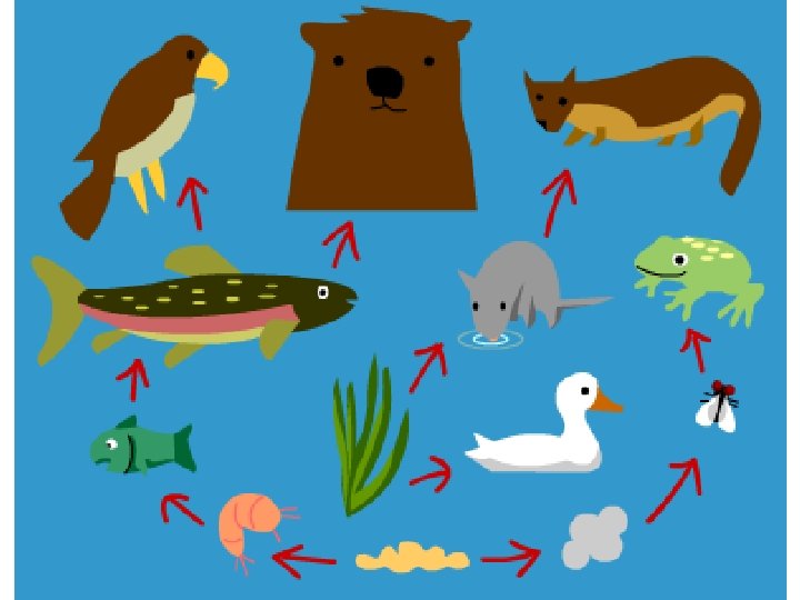 Food Web • Describe the organisms found in interconnecting food chains using pictures or words and arrows. • Food webs describe the complex patterns of energy flow in an ecosystem by modeling who consumes whom or what.