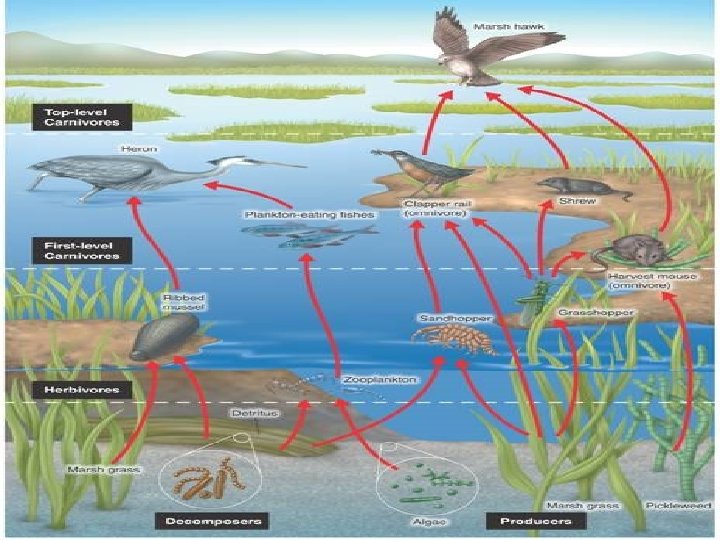 Trophic Level • Each step in a food chain or a food web is called a trophic level. • Producers make up the first trophic level. • Consumers make up the 2 nd, 3 rd, 4 th & 5 th levels. • There are rarely more than 4 or 5 levels