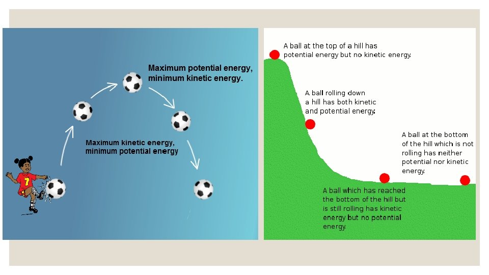 Potential Energy The ball at the top of the hill has a great deal of potential energy.