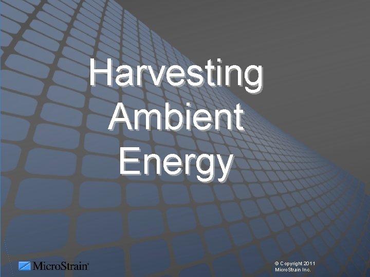 Harvesting Ambient Energy © Copyright 2011 Micro. Strain Inc.