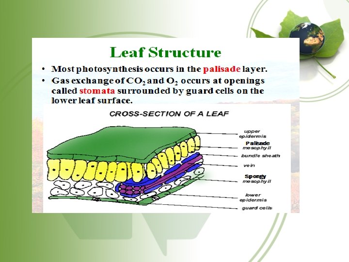 Photosynthesis • Done only by autotrophs • Two phases – Light reaction – • Chloroplasts use pigments to capture (or absorb) light energy from the violet -blue section of the light spectrum and reflect green. • The light reaction results in the production of 2 different energy storing molecules.