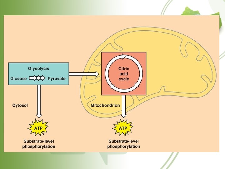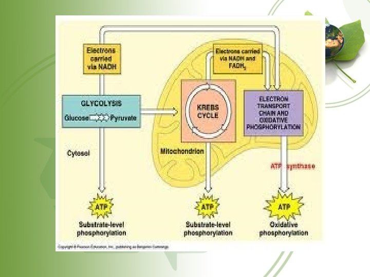 Cellular respiration • Cellular respiration – catabolic – Glucose is broken down – Pyruvate and 4 ATP are made – NADH and FADH are used to make ATP