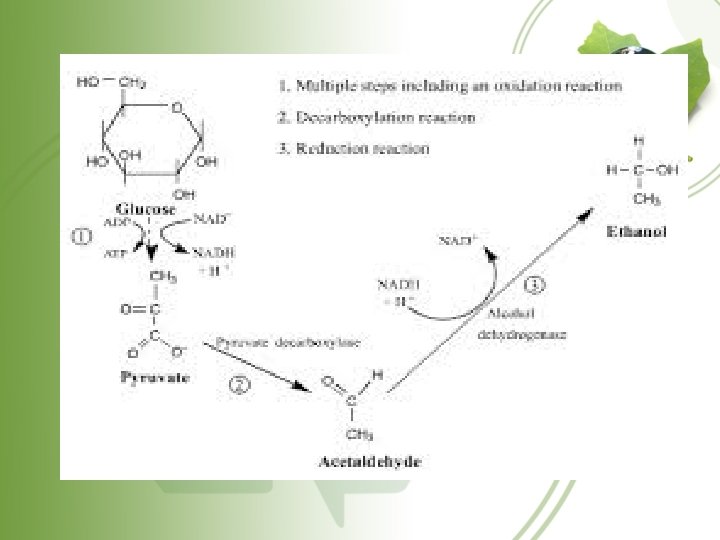 Alcohol Fermentation • Occurs in Saccharomyces cerevisiae (yeast) • Byproduct is Ethanol • Also occurs in wine, beer , etc….