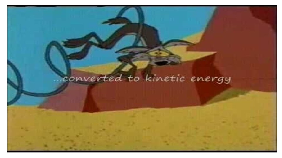 POTENTIAL ENERGY IS CONVERTED TO KINETIC ENERGY B A C 1. At the bottom of the hill (C), the cyclist has a [ low / high ] Kinetic Energy. 2. At the top of the hill, the cyclist has a [ low / high ] Kinetic Energy. 3. At the bottom of the hill, the cyclist has a [ low / high ] Potential Energy. 4. At the top of the hill, the cyclist has a [ low / high ] Potential Energy