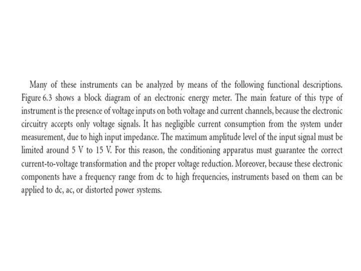 Energy measurement Energy is one of the most important physical quantities in any branch of science and engineering and especially in electrical engineering. Energy exchange processes lead to the study of electrical networks from the physical point of view and allow an in-depth knowledge of power transfer within the electrical world and between electric and other forms of energy. The definitions of energy and power represent the starting point for any successive study. 1. Energy is the amount of work that the system is capable of doing. 2. Power is the time rate of doing work. Energy can be mathematically defined as the definite integral of the power over a given time interval. The power available in a two-terminal section of a generic electric circuit is given by the product of the voltage across the terminals and the current flowing through the section itself (p = vi). The electric energy (E) flowing through the same section is defined by the integral of the power over the observation interval