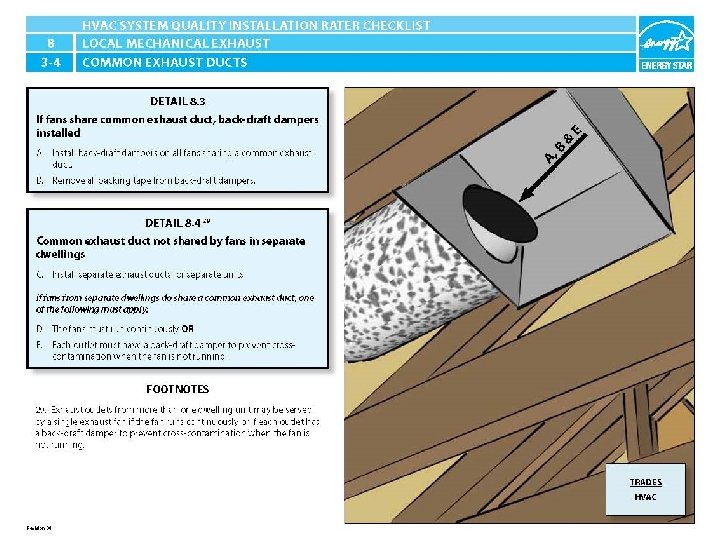 ENERGY STAR® QUALIFIED HOMES HVAC SYSTEM QUALITY INSTALLATION RATER CHECKLIST SECTION 8. LOCAL MECHANICAL EXHAUST 8. 3 If fans share common exhaust duct, back-draft dampers installed. 8. 4 Common exhaust duct not shared by fans in separate dwellings. 29