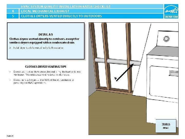 ENERGY STAR® QUALIFIED HOMES HVAC SYSTEM QUALITY INSTALLATION RATER CHECKLIST SECTION 8. LOCAL MECHANICAL EXHAUST 8. 5 Clothes dryers vented directly to outdoors, except for ventless dryers equipped with a condensate drain.