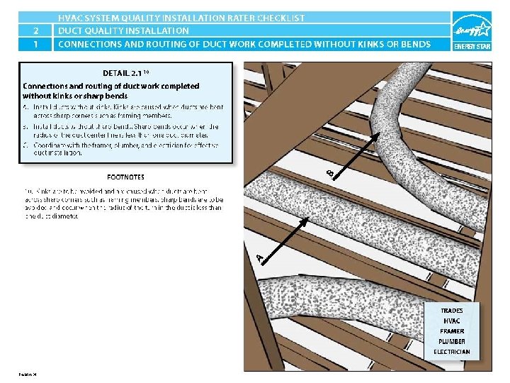 ENERGY STAR® QUALIFIED HOMES HVAC SYSTEM QUALITY INSTALLATION RATER CHECKLIST SECTION 2. DUCT QUALITY INSTALLATION 2. 1 Connections and routing of ductwork completed without kinks or sharp bends. 10 HVAC System Quality Installation Rater Checklist