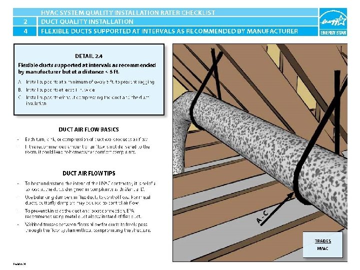 ENERGY STAR® QUALIFIED HOMES HVAC SYSTEM QUALITY INSTALLATION RATER CHECKLIST SECTION 2. DUCT QUALITY INSTALLATION 2. 4 Flexible ducts supported at intervals as recommended by mfr. but at a distance ≤ 5 ft.