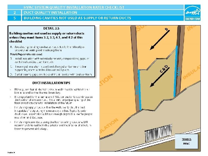 ENERGY STAR® QUALIFIED HOMES HVAC SYSTEM QUALITY INSTALLATION RATER CHECKLIST SECTION 2. DUCT QUALITY INSTALLATION 2. 5 Building cavities not used as supply or return ducts unless they meet items 3. 2, 3. 3, 4. 1, and 4. 2 of this checklist.