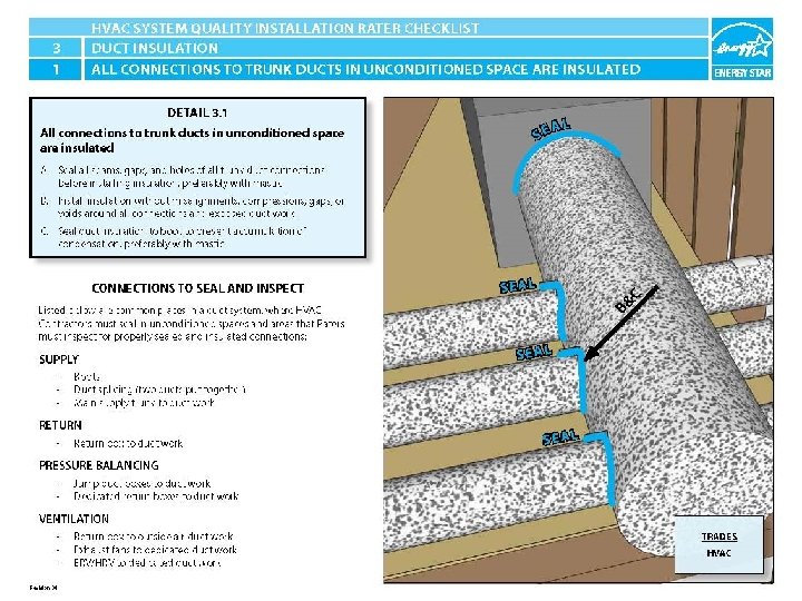 ENERGY STAR® QUALIFIED HOMES HVAC SYSTEM QUALITY INSTALLATION RATER CHECKLIST SECTION 3. DUCT INSULATION 3. 1 All connections to trunk ducts in unconditioned space are insulated.