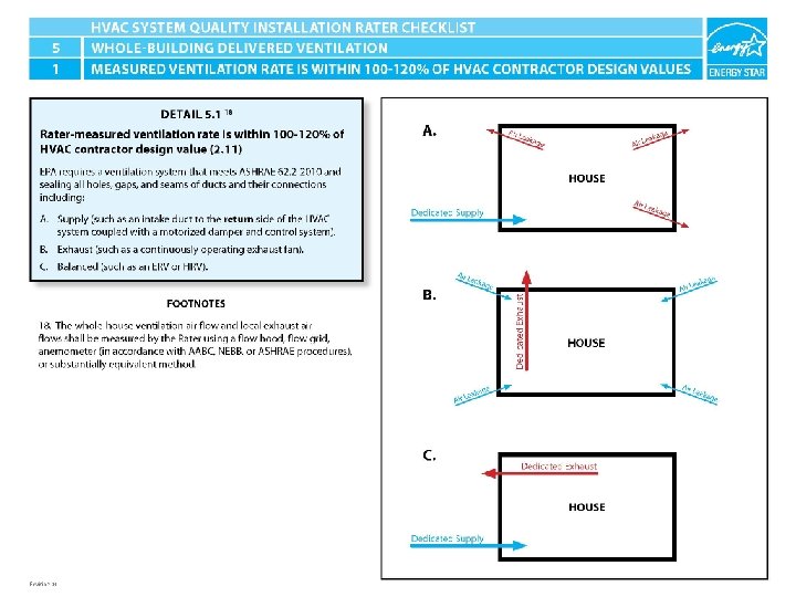 ENERGY STAR® QUALIFIED HOMES HVAC SYSTEM QUALITY INSTALLATION RATER CHECKLIST SECTION 5. WHOLE-BUILDING DELIVERED VENTILATION 5. 1 Rater-measured ventilation rate is within 100 -120% of HVAC contractor design value (2. 11). 18