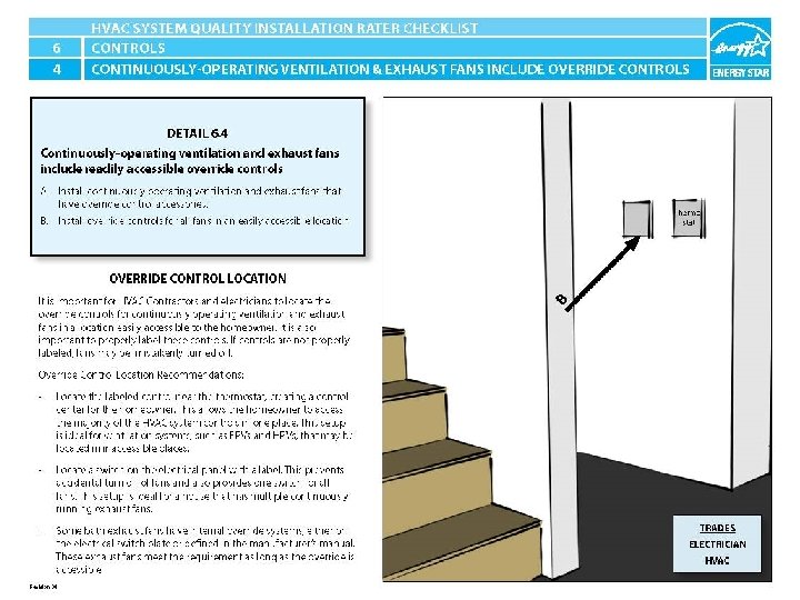ENERGY STAR® QUALIFIED HOMES HVAC SYSTEM QUALITY INSTALLATION RATER CHECKLIST SECTION 6. VENTILATION CONTROLS 6. 4 Continuously-operating ventilation & exhaust fans include readily accessible override controls.