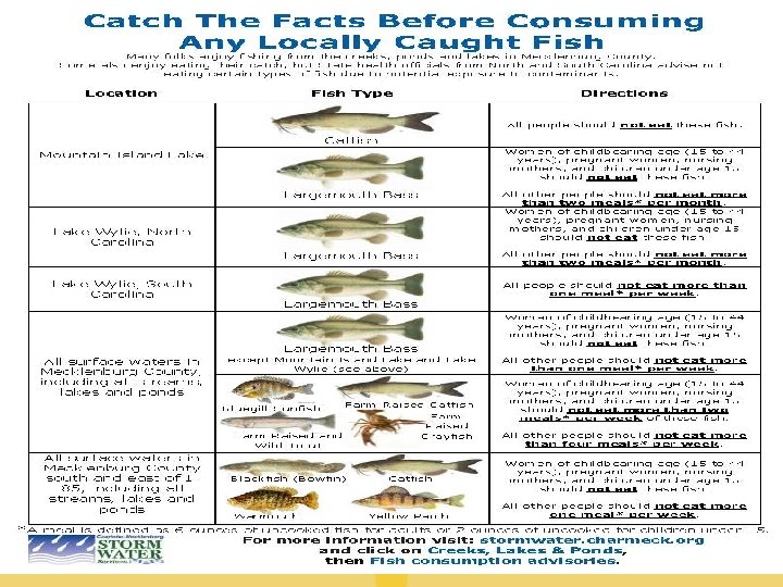 Bioaccumulation in NC 1. 2. 3. Bioaccumulation: the build up in higher trophic levels of certain chemicals like mercury and pesticides. Almost all samples of fish taken from NC rivers contain some level of mercury. Large mouth bass has been placed on a consumption advisory.