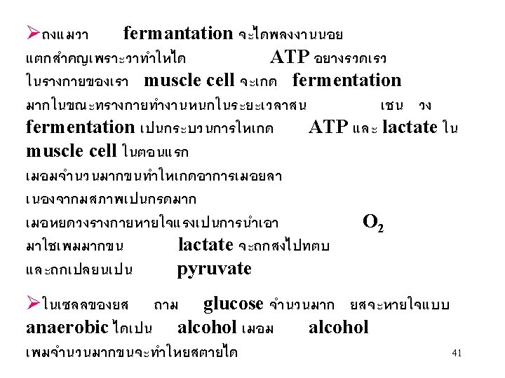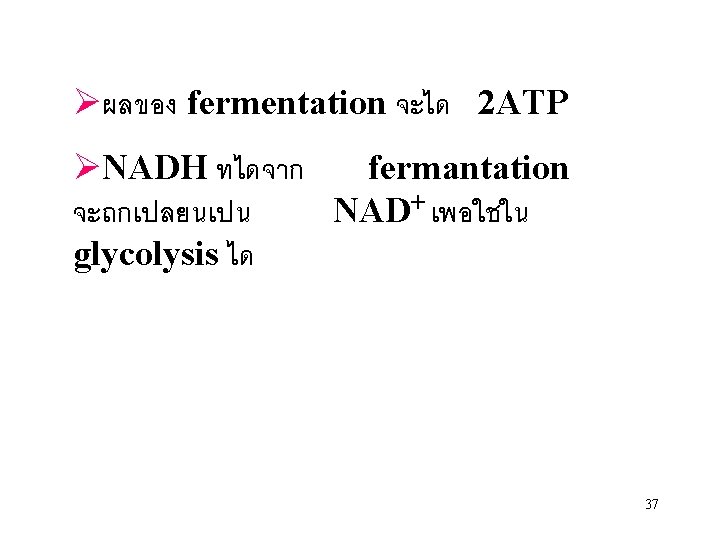 โปรตนทอยทผวของ mitochondria จะขนสง pyruvate เขาไปใน mitochondria Net: 2 Pyruvate 2 C 2 O 2 Acetyl Co. A + 2 NADH ออกจากเซลล 28
