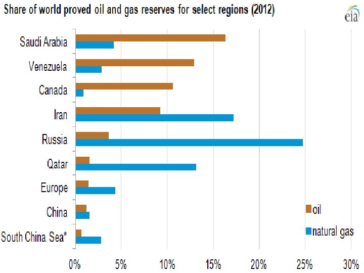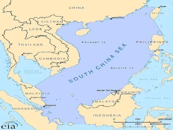 SCS as a source of hydrocarbons • Spratlys and Paracels have not been assessed to hold large O&G resources, though industry sources suggest almost no oil and less than 100 bcf of natural gas in reserves exist in fields near Spratlys; Paracels has even less natural gas and no oil
