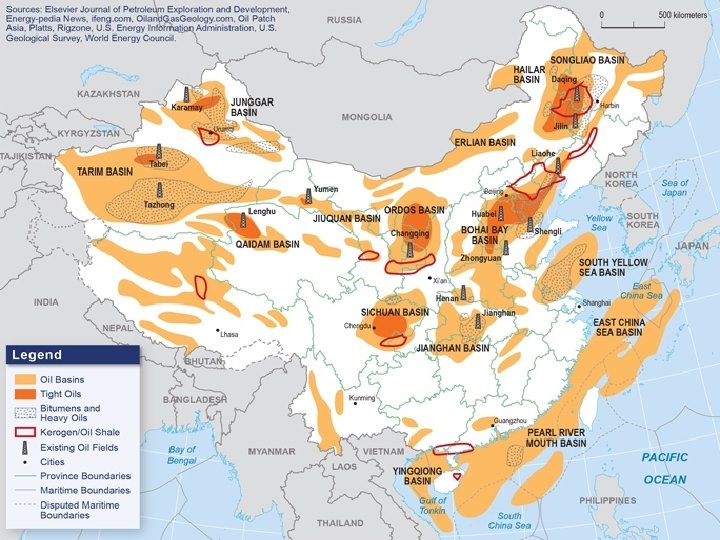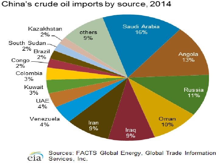 Trends - China • • Ranked 1 st for energy consumption (2011) Surpassed US to become largest net importer of petroleum and other liquids (2013); 43% of 2014 world oil consumption fueled by China Largest oil fields are mature, and production has peaked; companies now investing in recovery and efficiency to maximize extraction Largely untapped reserves in the western interior provinces and offshore fields are being developed
