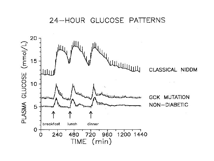 Glucokinase Disease Familial fasting hyperglycemia (MODY 2) • Life-long mild or moderate fasting hyperglycaemia, from birth • Clinical phenotype remarkably constant • Compensation over expression of the normal, non-mutated allele • Rarely symptomatic and (usually detected incidentally) • Glucose remains regulated at a higher level re-setting • Fasting glucose >5. 5 mol/l 2 hour value <4. 5 mmol/l