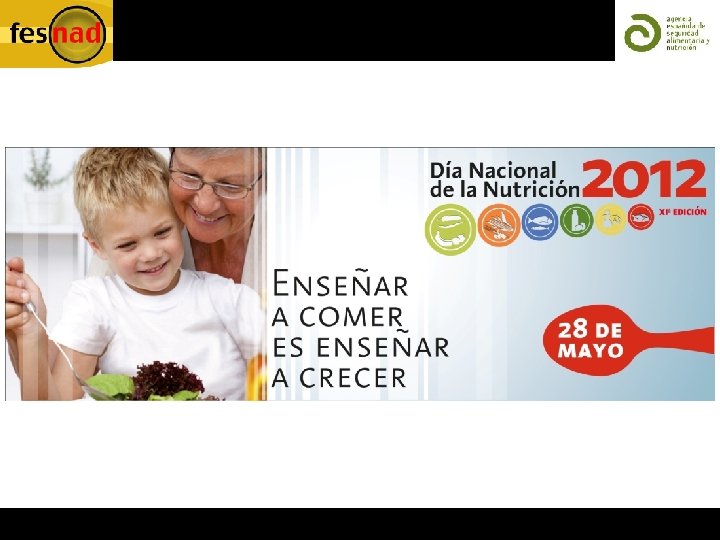 ESTUDIO FESNAD, 2012 ¿QUÉ OPINIÓN TIENEN LOS ABUELOS? El 55, 5% de los encuestados indica que sus nietos se quedan a comer o cenar algún día todas o casi todas las semanas. El 63% de los abuelos encuestados indica que los días que sus nietos se quedan a comer o cenar, preparan la comida habitual, y que los nietos se adaptan a su comida. En la opinión de los abuelos, el 66% de los nietos no comen de todo. Los abuelos de entre 60 y 69 años, indican con mayor frecuencia que el resto de los abuelos, que sus nietos no comen ensalada.