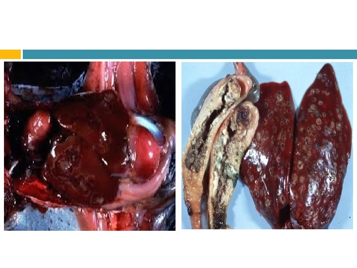 Lesiones Las lesiones son en la mucosa cecal y en el tejido hepático pueden ser aprovechadas por agentes patógenos oportunistas como E. coli y los coccidios.