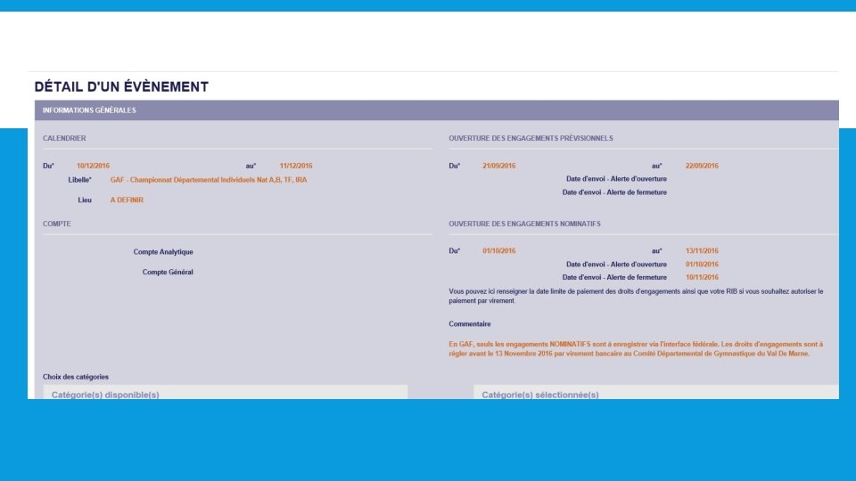 Vous accédez à la page suivante. Cliquez sur l’évènement concerné par vos engagements.