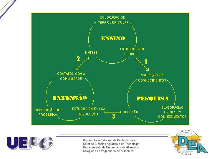 Projetos de pesquisa e extensão Os professores do Curso de Engenharia de Alimentos ministram aulas, desenvolvem projetos de pesquisa e extensão. A participação nestas atividades propicia aos acadêmicos estágios nos projetos de graduação e também de pós-graduação junto ao Mestrado em Ciência e Tecnologia de Alimentos da UEPG.