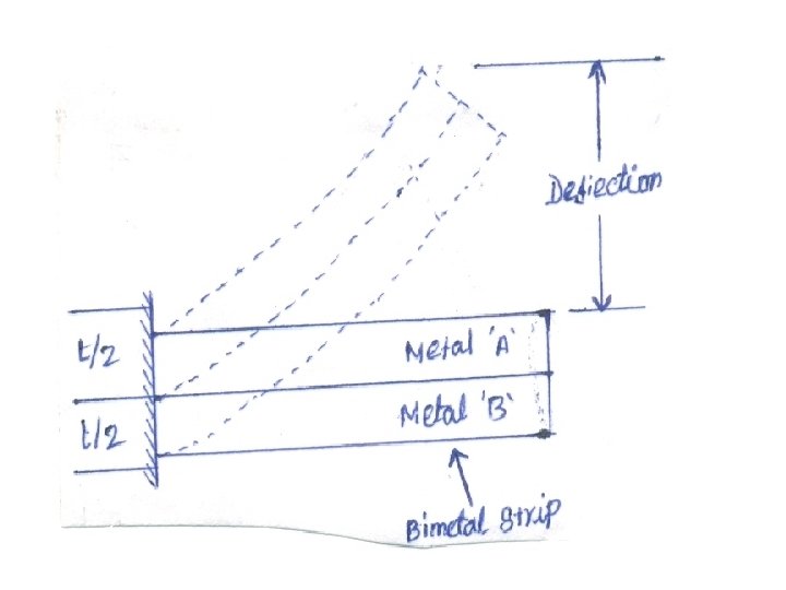 Bimetallic Thermometers: • Principle Involved : These use the principles of metallic expansion when temperature changes. • A bimetallic strip is shown in figure which is straight initially. When temperature changes, its shape also changes into an arc.