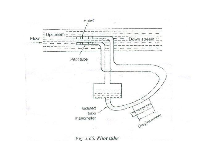Pitot Tube • Principle: “Transformation of kinetic energy of a liquid into potential energy in the form of a static head”. • Figure shows a pitot tube installed in a pipeline where it acts like a probe. The tube consists of two concentric tubes, the inner tube with its open ends ‘faces’ the liquid.