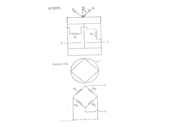 LOAD CELLS • Use of Load Cell • Force transducers intended for weighing purposes are called load cells. Instead of using total deflection as a measure of load, strain gauge load cells measure load in terms of unit strains. A load cell utilizes an elastic member as the primary transducer and strain gauges as secondary transducer. Figure shows one such load cell arrangement.