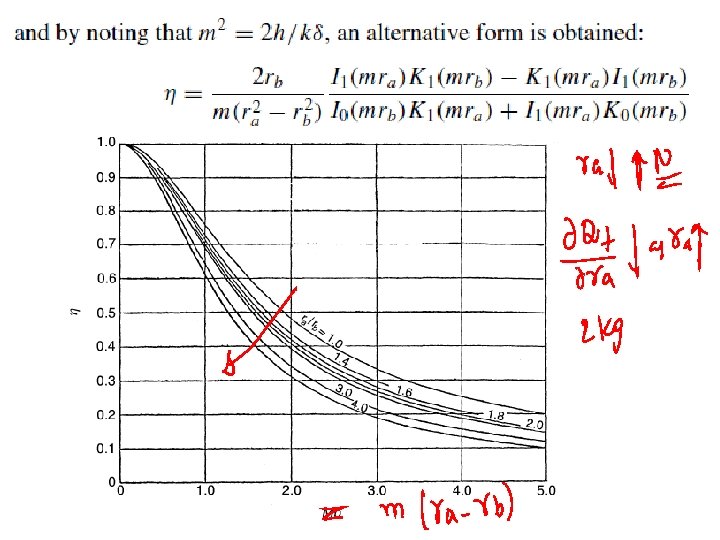 Heat Dissipation Capacity of Cylinder with Radial fins • The heat flow through a fin is given by the heat flow at the base of a fin and can be expressed as The total heat flow from a fin array is the sum of heat flow from the fin body and the heat flow from the base surface without fin and can be written as