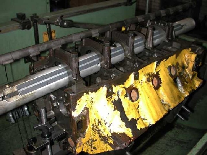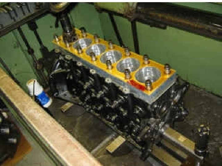 Cylinder Boring • A boring bar is used to bore the cylinder diameter. • The cylinder must be perpendicular to the crank-shaft bore before boring is attempted. • Main bearing caps must be installed and torqued to specifications prior to boring.