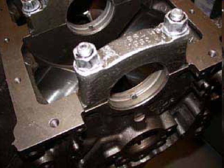Main Bearing Caps • Designs include … – A Girdle design. (pg. 440 fig. 19 -24). – A two bolt main cap (pg. 439 fig. 19 -21). – A four bolt main cap (pg. 439 fig. 19 -22). • Mostly high-performance and truck designs.