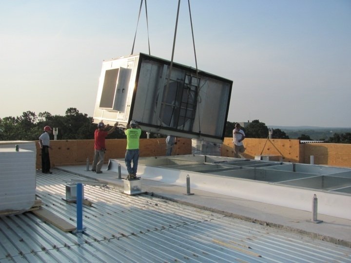 The new direct replacement unit is rigged onto the existing curb. 4500 Industrial Access Road Douglasville, GA ; P 770 -489 -0716 www. seasons 4. net