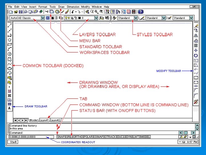 Drawing Limits: Ø Drawing limits are used to set the boundaries of the drawing. The drawing boundaries are usually set to match the size of a sheet of drawing paper. This means that when the drawing is plotted and a hard copy is made, it will fit on the drawing paper.