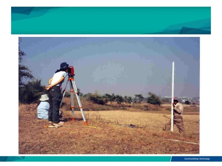Basic principles �Measure distance at right angles �Measure distance and angle �Measure angles The fundamental rule in surveying project is WORK FROM THE WHOLE TO THE PART.