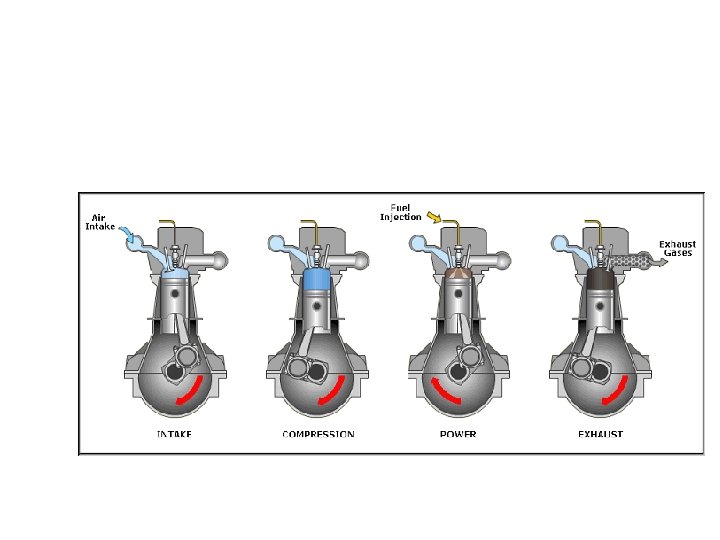 • In other words: • • Intake (suck) Compression (squeeze) Power (bang) Exhaust (blow) • Thanks Decker!!
