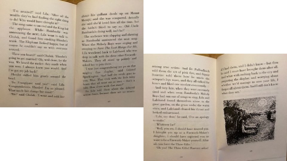 Answers 1) Noise 2) Three 3) It was obvious who had won as the applause kept going and was so loud. 4) Chulak to introduce his Uncle Rambashi and the Melody Boys to sing. 5) So it is dark and they can see the fireworks. 6) They were yelling, cheering and clapping. 7) The three gifts were talent, courage and luck. 8) Philip Pullman builds tension by saying they “looked at each other. There was nothing to say. But then they hugged each other very tightly, and ran to their places”