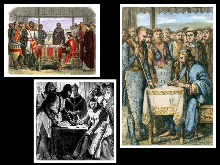 Magna Carta, 1215 a King John I forced to accept it. a A list of demands made by the nobility. a Created a CONTRACT between the king and the aristocracy. a Established principles which limited the power of the king: v Not to imprison nobles without trial v That trials must be in courts: trial by jury with peers; not held in secret by King v To have fair taxation for the nobles v To let freemen travel wherever they like v Not to interfere in Church matters v Not to seize crops without paying for them
