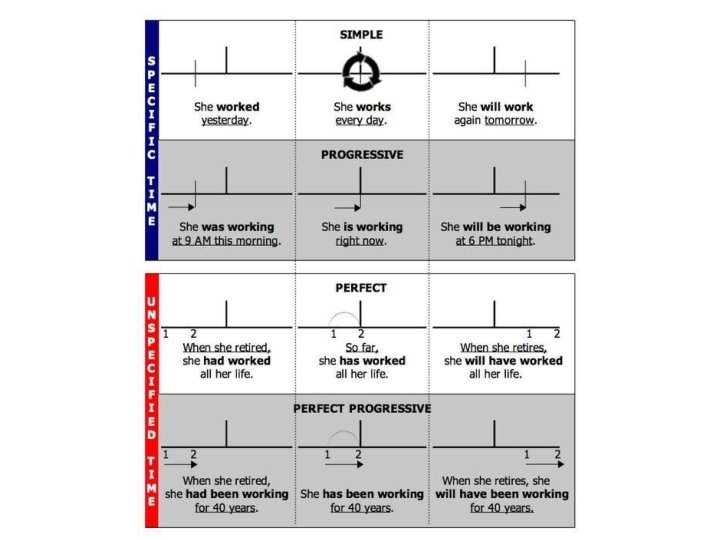 o Perfect Continuous/Progressive This tense is the same as the. Tense perfect simple except it refers to events that are or had been occurring at the time of the reference point o o Example: When I heard the news, I had been working for 2 hours. • Event that was occurring: Working • Reference point: When I heard the news Past: I had been working • o Present: I have been working • o I had been working for 2 hours already before I was able to start writing the paper I have been working since 7 am Future: I will have been working • When you get here, I will have been working for 16 hours