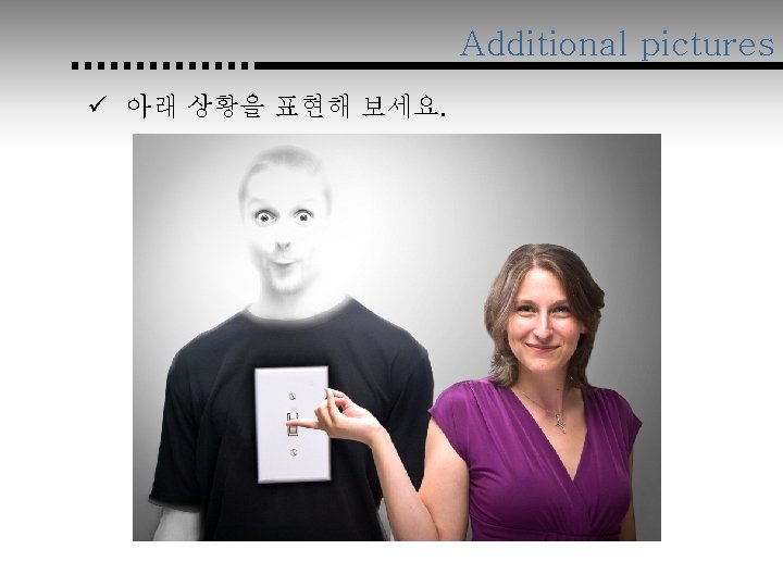 Step 3 -2 ü 아래 상황을 표현해 보세요. - turn on the light - I was turning on the light