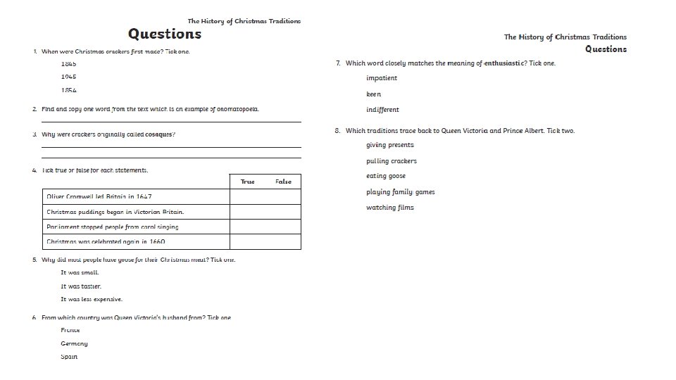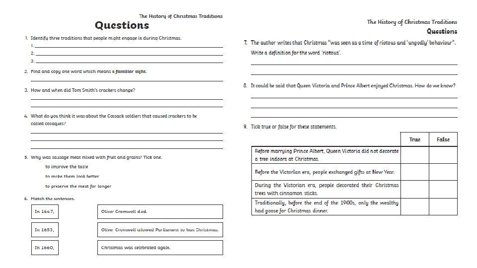 Reading Task: 2*/3* Task: Read the information focusing on Christmas traditions and answer the following questions