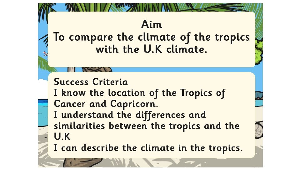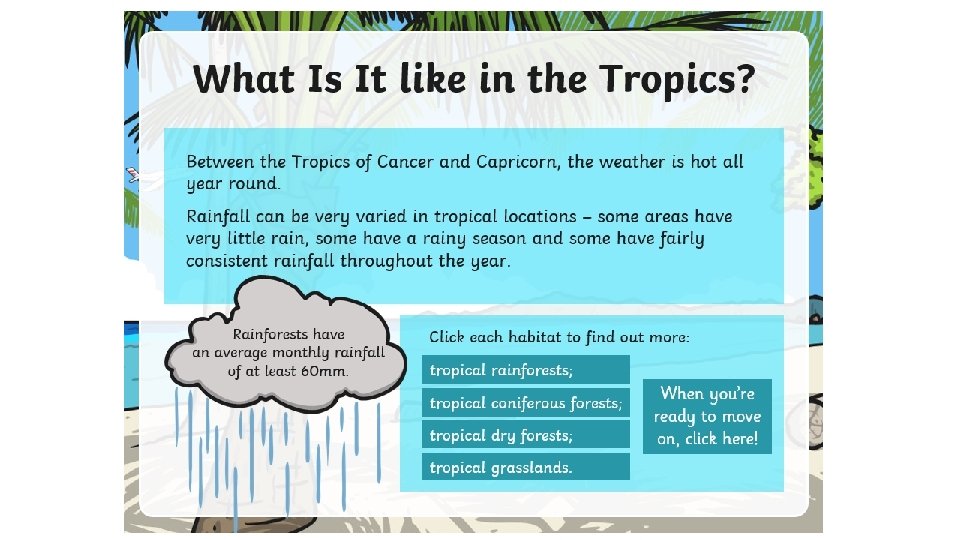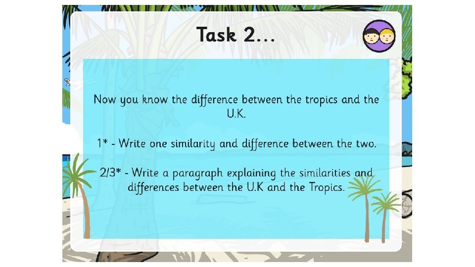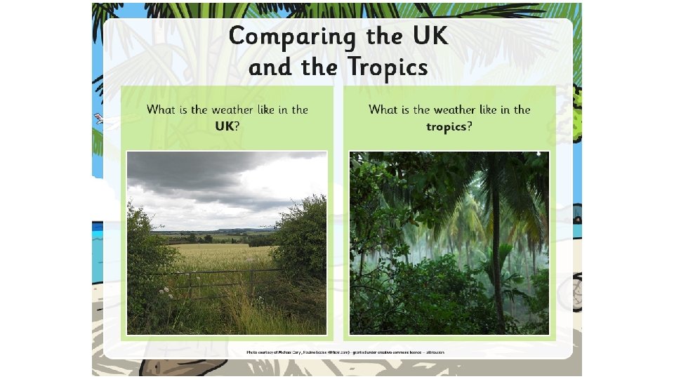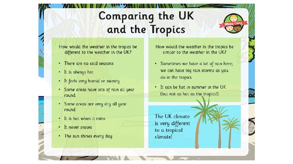 Your Topic task this afternoon will focus on the varying types of weather that occur within the Tropics and the UK.