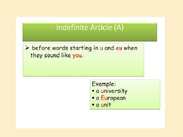 A IS USED �A is also used before a word beginning with a vowel but sounding like a consonant. � Example : a one rupee coin � a European � a utensil