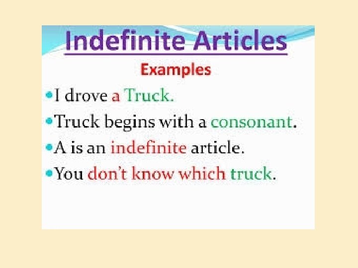 TYPES OF ARTICLES � Definite Article � Indefinite Articles