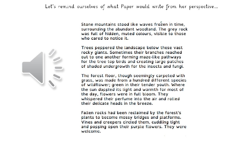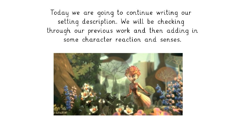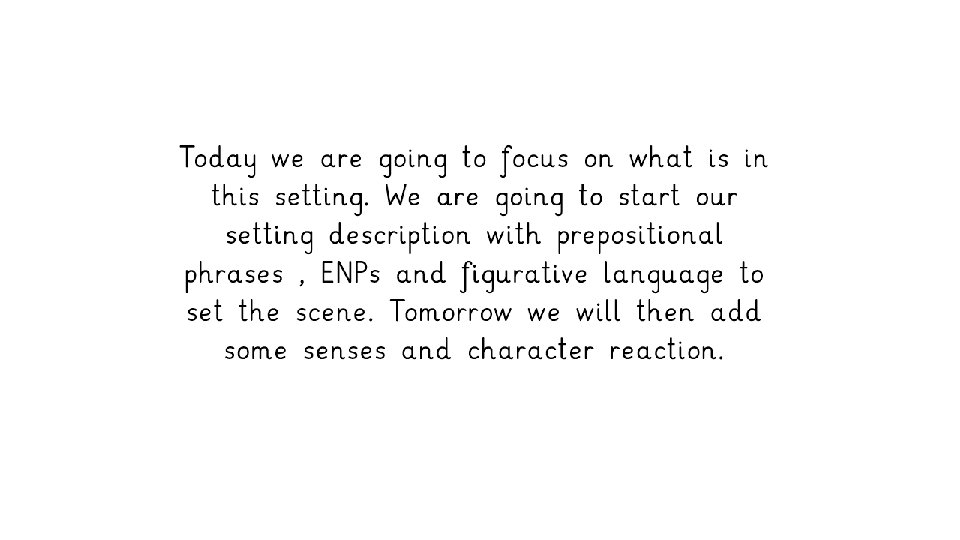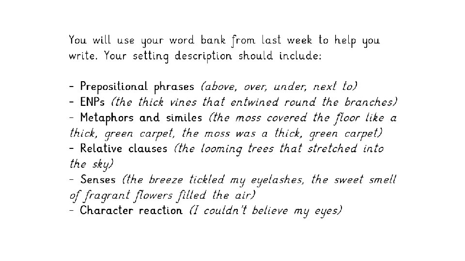 Watch the previous video to see an example of how you might write this paragraph. Use the vocabulary you collected last week as well as the word bank on the next page to help you write your setting description.